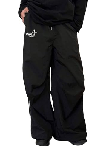 More information about OYOANGLE Men's Loose Fit Baggy Pants Letter Graphic Drawstring Waisted Streetwear Wide Leg Pants