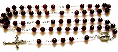 More information about elegantmedical HANDMADE Garnet Gemstone Bead Catholic Sterling 925 Silver 5 DECADE ROSARY Cross Crucifix Necklace Womens