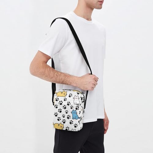 KLL Happy Cute Cat Colorful Footprint Black messenger bag for men Vegan Leather mens crossbody bag small Shopping Lady Shoulder Handbags 4