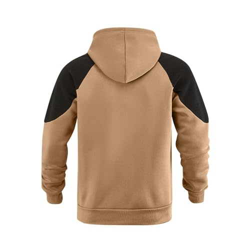 Hoodies for Men Drawstring Long Sleeve Pullover Patchwork Color Block Fleece Sweatshirt Trendy Pocket Raglan Shirts 6