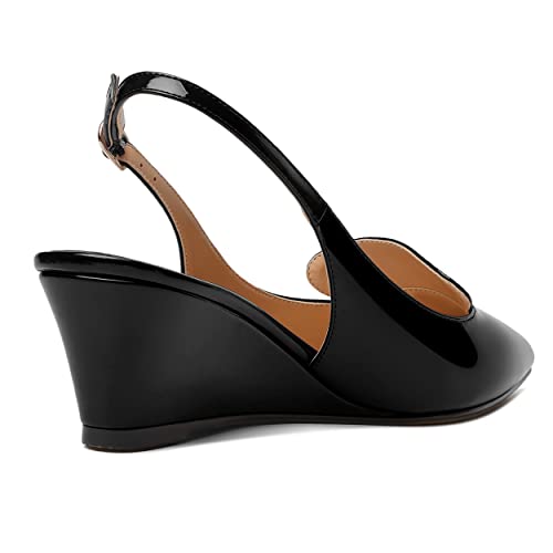 ROSERWISH Womens Pointed Toe Slingback Patent Party Office Buckle Dress Wedge Low Heel Pumps Shoes 2 Inch 6