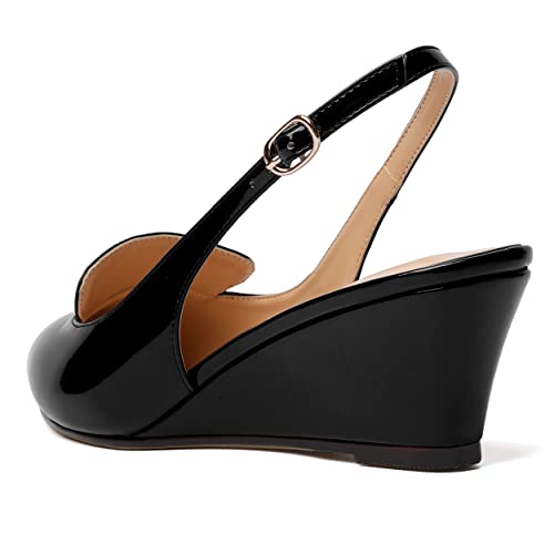 ROSERWISH Womens Pointed Toe Slingback Patent Party Office Buckle Dress Wedge Low Heel Pumps Shoes 2 Inch 1