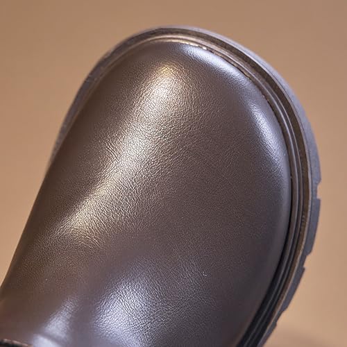 IWIHMIV Little Girls Riding Boots Leather Round Toe Mid Calf Boots Non Slip Thick Soled High Booties with Zipper 4