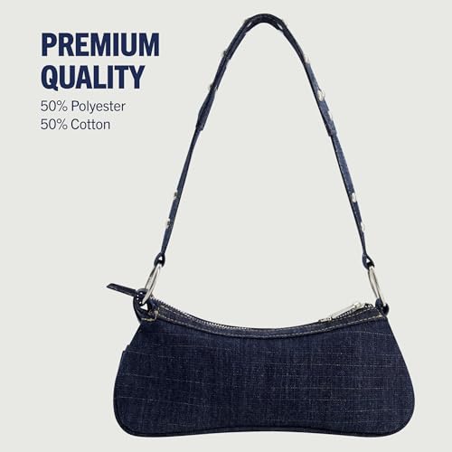 True Religion Women's Shoulder Bag Purse, Mini Travel Handbag with Studded Horseshoe Logo, Denim
