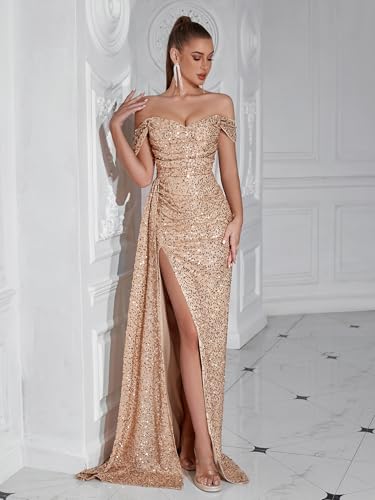 Gowns Formal Dresses for Women Sequin Tulle Sexy Off Shoulder Evening Wedding Guest Party Floor Length Prom Dress 4