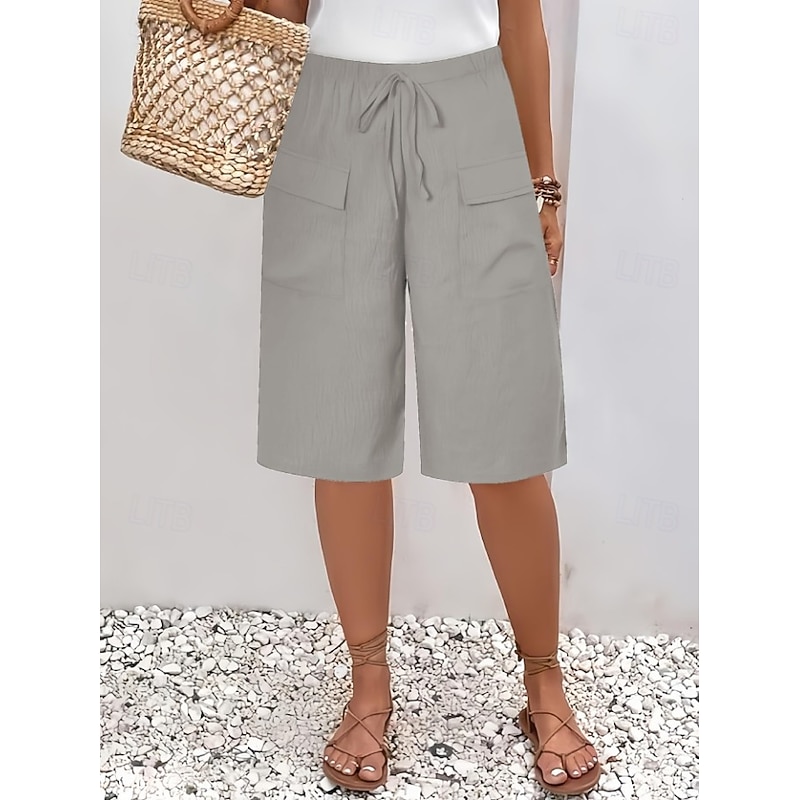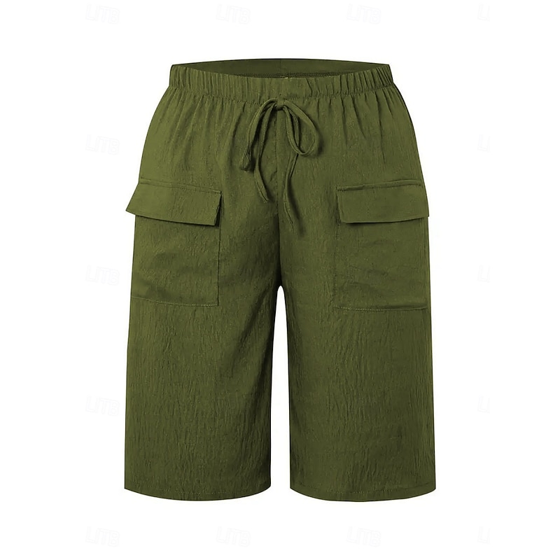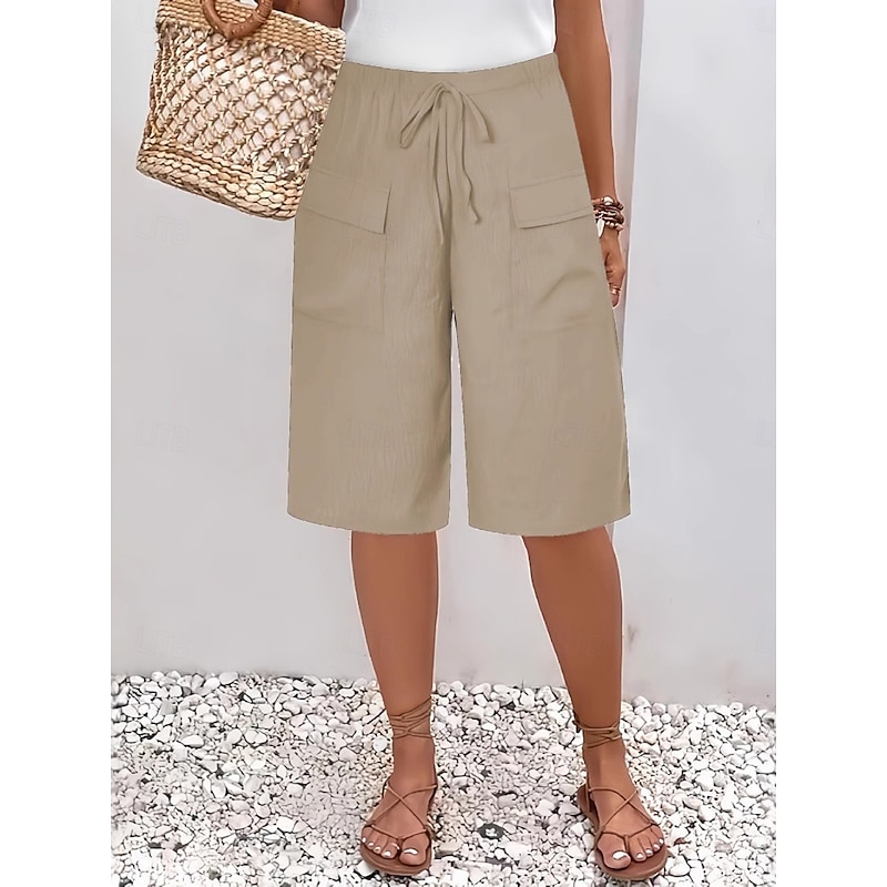 More information about Women's Chinos Shorts Basic Casual Knee Length High Waist Plain Elastic Waistband Comfy Soft Comfortable Micro-elastic Outdoor Street Black Orange Green Khaki Summer Spring Regular Fit