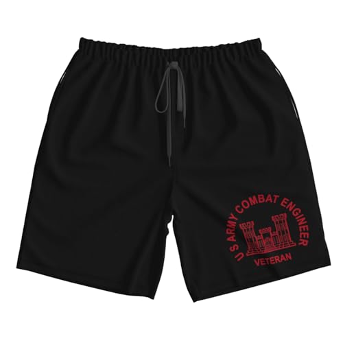 US Army Combat Engineer Veteran Men's Beach Shorts rapid Dry Swim Trunks with Pockets Mesh Lining