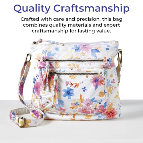 • STYLISH FLORAL PATTERN: This vegan leather crossbody bag features colorful flowers against a white backdrop enhanced with antique bronze accents, blending trendy style with practicality for everyday or travel use