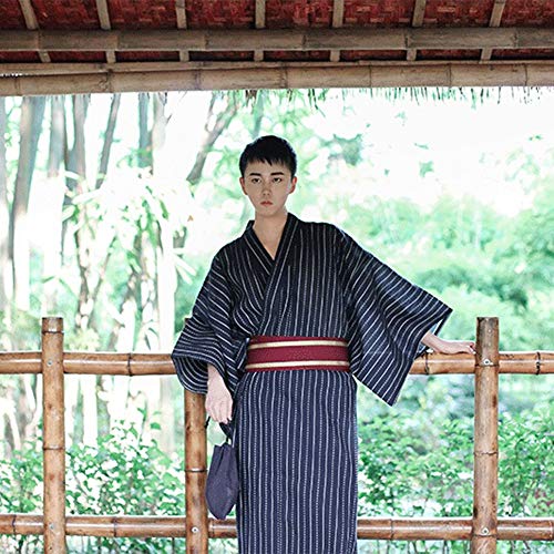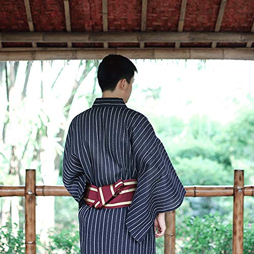 More information about Men's Japanese Traditional Kimono Robe Long Sleeve Spa Bathrobe Easy Wearing Yukata Sleepwear Nightgown Unisex OBI Belt Set Navy Stripe