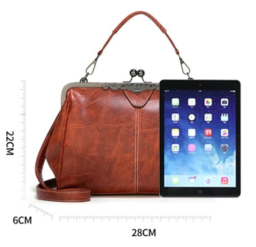 Women Vintage Crossbody Bag Top Handle Kiss Lock Handbag Retro Daily Purse PU Leather Tote Women Satchel Messenger Bag