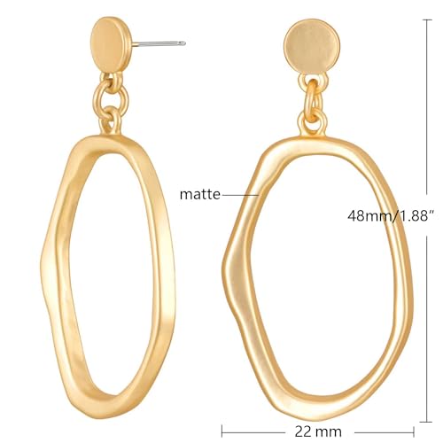 Stud Earrings for Women 14k Gold Plated Geometric Dangle Earrings Lightweight Minimalist Handmade Hammered Texture Oval Disc Drop Double-layer Big Hoop Dangle Earrings for Women 5