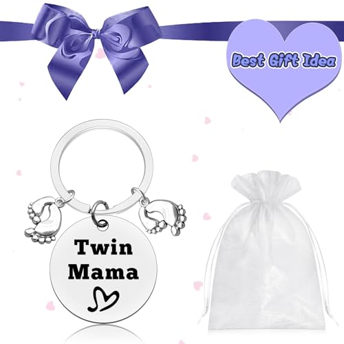 HOT ! Twin Mom Gifts Keychain Twins Mama Gifts for BFF Pregnancy Presents for New Mother from Family Announcement Presents Keychain Mother's Day Gift for Mommy