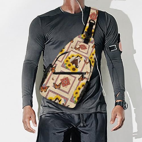 Fashion Chest Bag, Shoulder Bag, Dress Decor Sling Backpack, Casual Day Pack For Travel Shopping Native Sunflower Western Horse 7