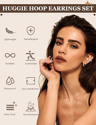 • Stud and Hoop Earrings Sizes: Women's earrings studs gauge:0.8mm(20G),pole length:10mm.Basic earring huggies inner diameter:8mm/10mm/12mm.Easy to insert and remove,they are well-fitted,stackable,and ideal for multiple ear piercings.Whether stacked or worn alone,they are the perfect choice for any style