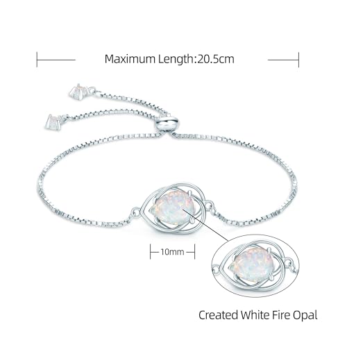 YUNKAI 925 Sterling Silver Opal Bracelet, Adjustable Pear/Round/Oval Cut Opal Link Bracelet for Women, October Birthstone Jewelry Gifts for Her Birthday Christmas