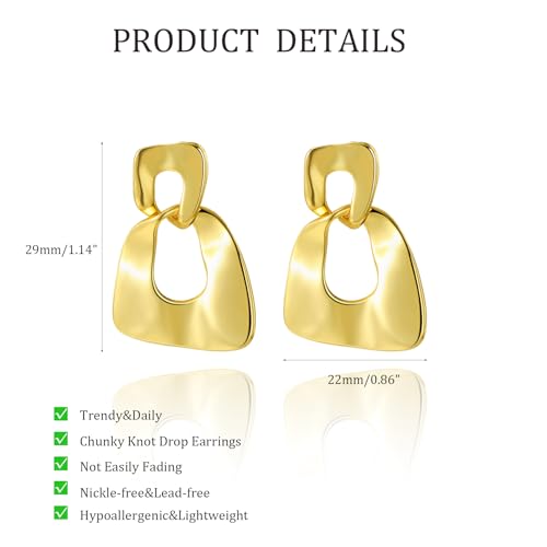 • ✨【Hypoallergenic Gold Earring】: 18k gold plated earrings, made of premium brass, plated with real gold, ensure a faded color. The gold statement earrings for women are comfortable for sensitive ears, so you can enjoy the long-lasting use of these earrings.