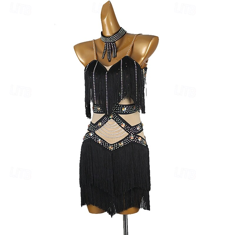 $255.79 - Latin Dance Dress Rhinestone Tassel Splicing Women's Performance Training Sleeveless Chinlon Mesh Spandex 2025. Shop for cheap Competition Dress online? Buy at lightinthebox.com on sale today!