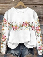 More information about Women's Pullover Floral Graphic Warm Classic Casual Long Sleeve Crew Neck Regular Tops Home Street Dailywear Print White Spring Fall Winter