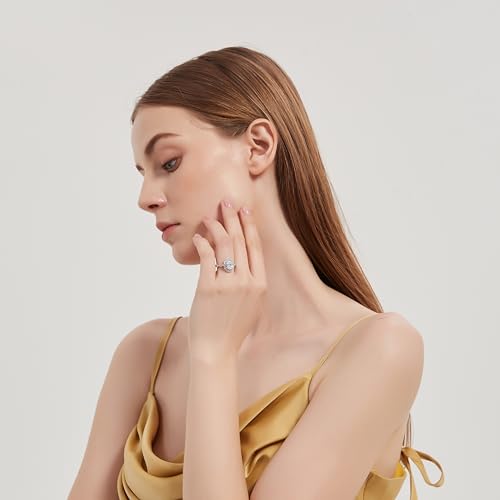 THELANDA 2CT Oval Cut Genuine Moissanite or Simulated Diamond Sterling Silver Milgrain Vintage Promise Ring Halo Engagement Ring 4