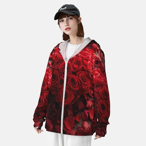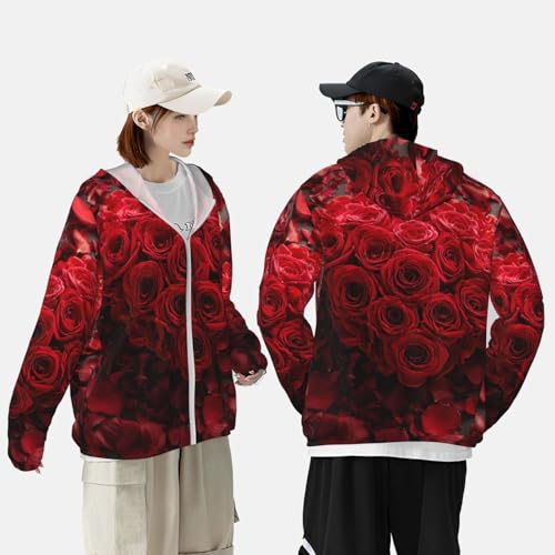 • UV Protection: Our Red Rose Love Heart long sleeve sun shirts features cutting-edge UPF 50+ technology, effectively blocking UV rays to ensure robust sun protection during your outdoor adventures. Designed with a hood to protect the neck, and other sun-exposed areas. Ideal for extended outdoor activities