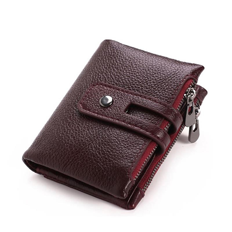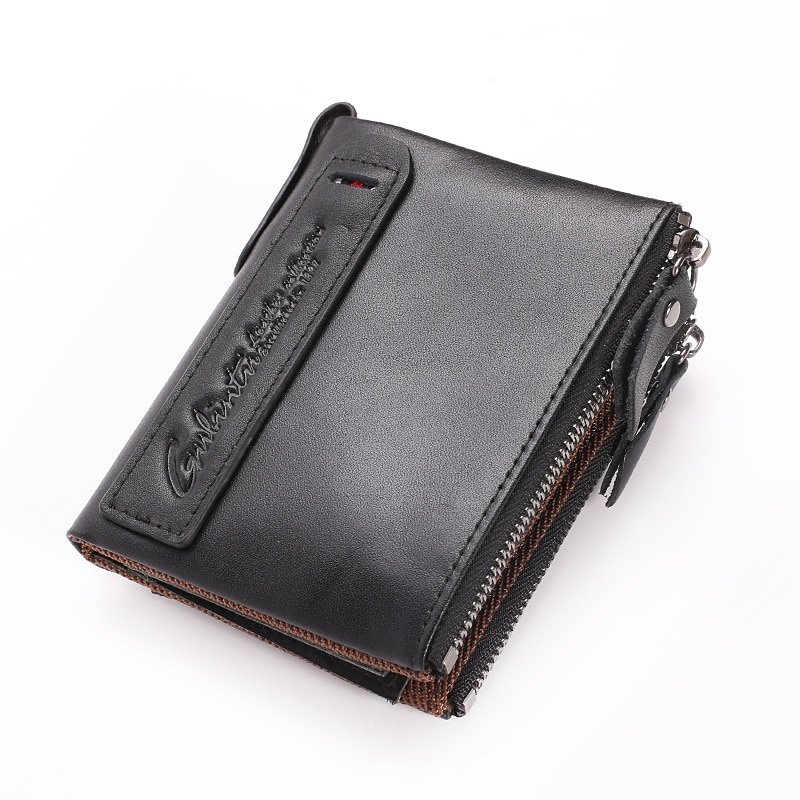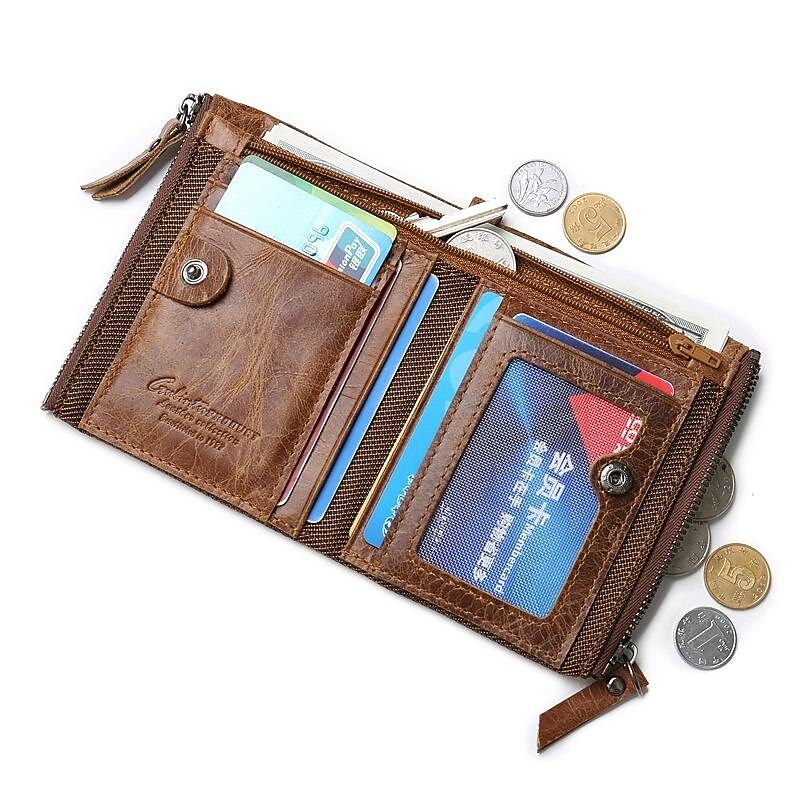 GUBINTU Men Short Wallet Genuine Leather Enterprises Fashion Wallet Crazy Horse Cowhide Double Zipper Wallet 7