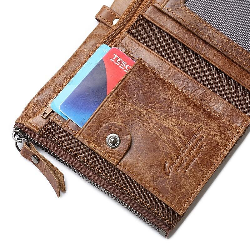 GUBINTU Men Short Wallet Genuine Leather Enterprises Fashion Wallet Crazy Horse Cowhide Double Zipper Wallet 3
