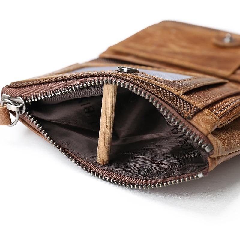 GUBINTU Men Short Wallet Genuine Leather Enterprises Fashion Wallet Crazy Horse Cowhide Double Zipper Wallet 11