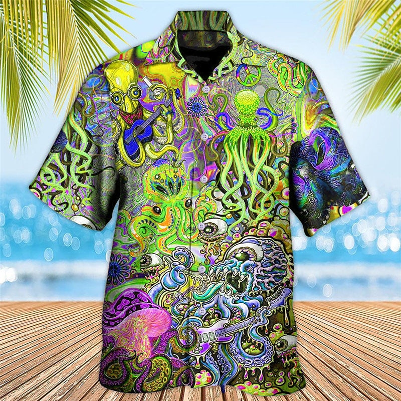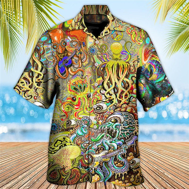 Men's Tropical Guitar Octopus Shirt Summer Hawaiian Shirt Aloha Shirt Short Sleeve Shirt Turndown Tropical Fashion Hawaiian Casual Hawaiian Holiday Yellow Red Purple S M L 10