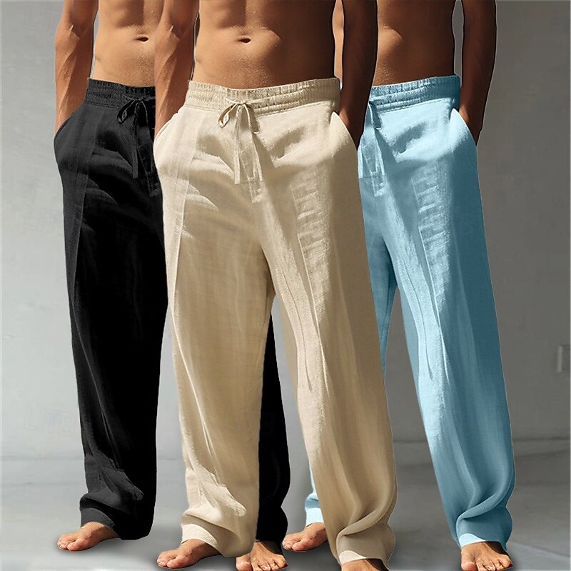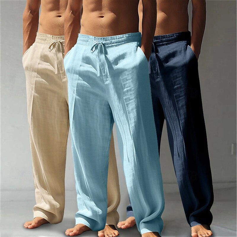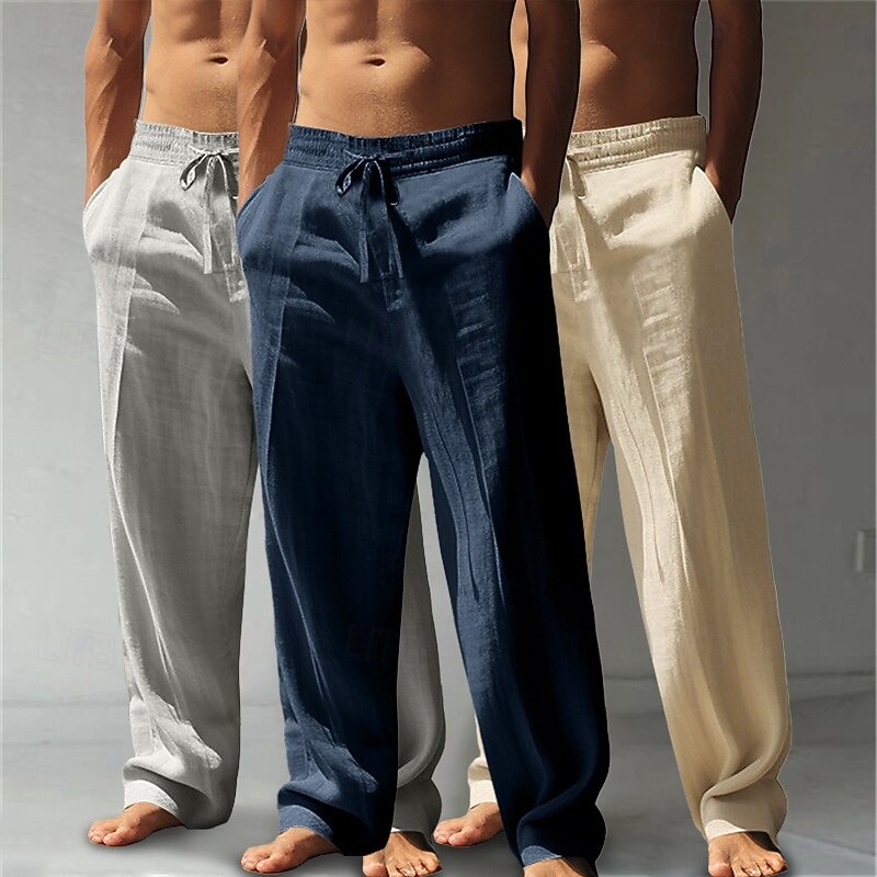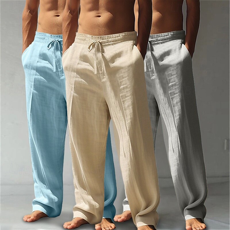 Men's Linen Pants Trousers Summer Pants Baggy Pants Beach Pants Drawstring Elastic Waist Straight Leg Plain Comfort Breathable Knee Length Outdoor Casual Daily Vacation Classic Style White+Black+Gray 12