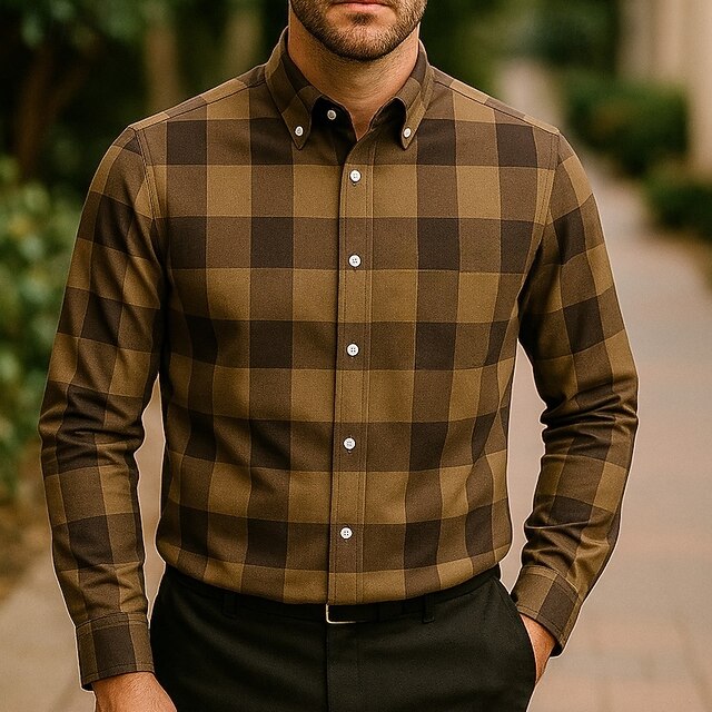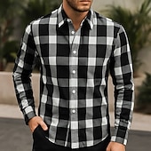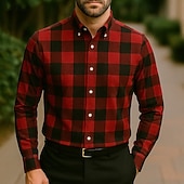 More information about Men's Shirt Summer Shirt Casual Shirt Beach Shirt Button Up Shirt Black White Red Brown Long Sleeve Plaid Lapel Vacation Hawaiian Clothing Apparel Polyester Fashion Casual Comfortable