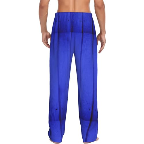 HOT ! Mens Pajama Pants - Dark Blue Bright Wood Grain Print Soft Sleep Lounge Pants For Men, Casual Pj Bottoms With Pockets