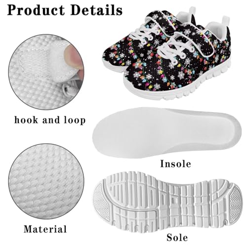 Christmas Colorful Lights Snowflake Pattern Boys Sneakers Kids Running Shoes Girls Mesh Fitness Shoe Indoor Training Sneaker Outdoor Sports Athletic Tennis Shoes for Little Kid(White Sole) 4