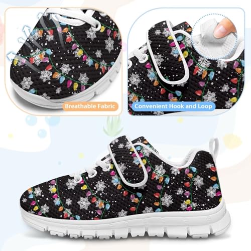 Christmas Colorful Lights Snowflake Pattern Boys Sneakers Kids Running Shoes Girls Mesh Fitness Shoe Indoor Training Sneaker Outdoor Sports Athletic Tennis Shoes for Little Kid(White Sole) 1