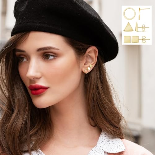 Flat Back Stud Earrings for Women Simple Tiny Circle Triangle Square Bar Stud Earrings Mini Cartilage Tragus Earring Jewelry Gifts 3