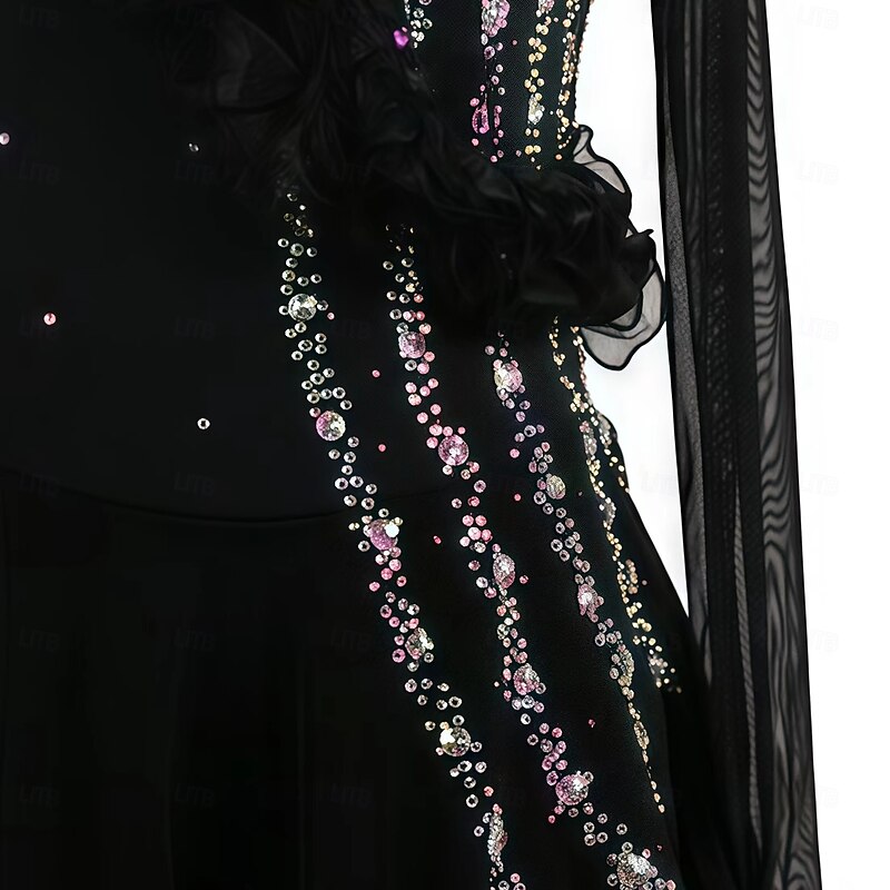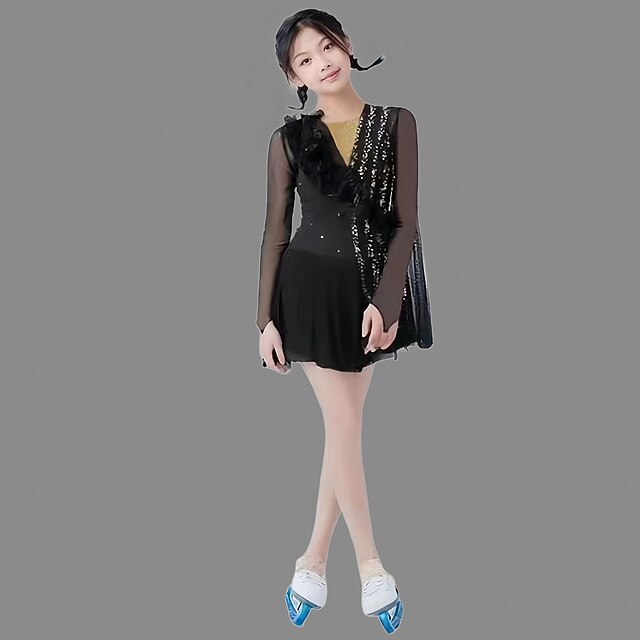 More information about Figure Skating Dress Women's Girls' Ice Skating Dress Black Patchwork Thumbhole Mesh Spandex Stretchy Training Practice Professional Skating Wear Thermal Warm Classic Crystal / Rhinestone Long Sleeve
