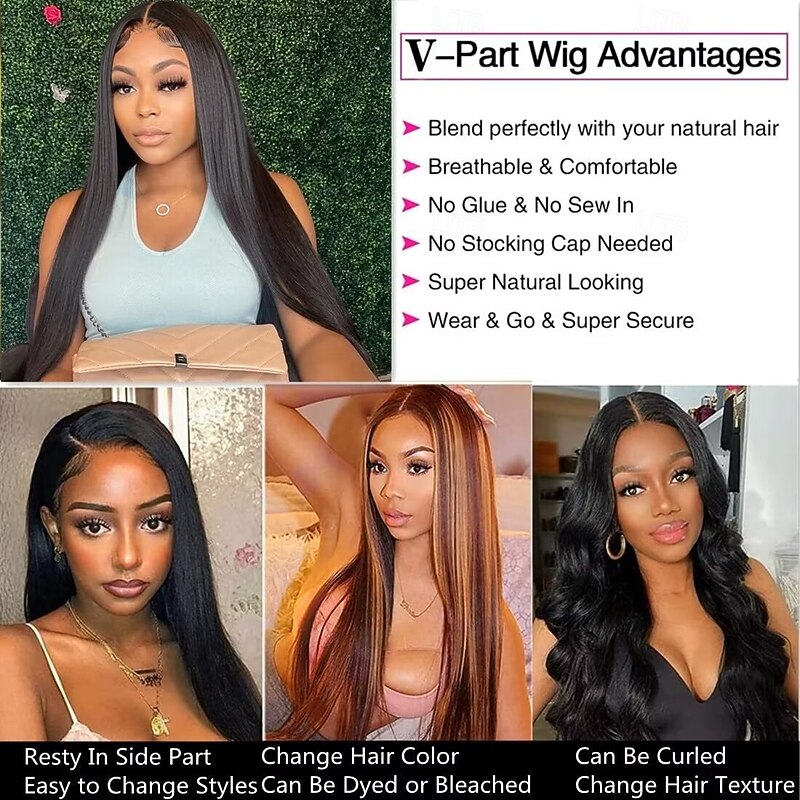 More information about V Part Wigs Human Hair Straight Brazilian Human Hair Wigs for Black Women Upgrade U Part Wigs No Sew in NO Glue Half Wigs Human Hair 180% Density Natural Color