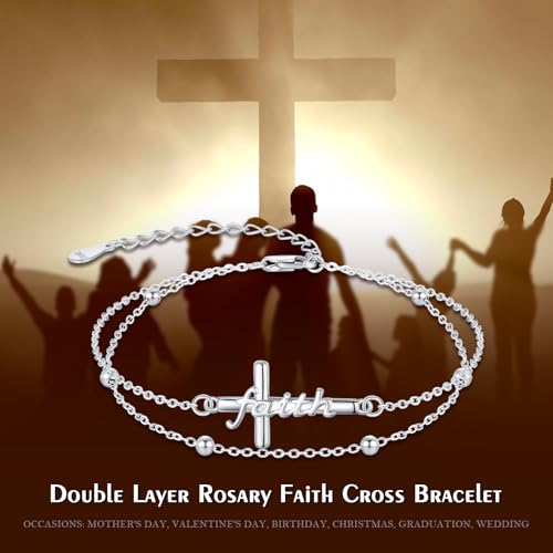 Midir&Etain Faith Cross Bracelet 925 Sterling Silver Gold Rosary Layered Anklet Religious Christian Jewelry Gifts for Women