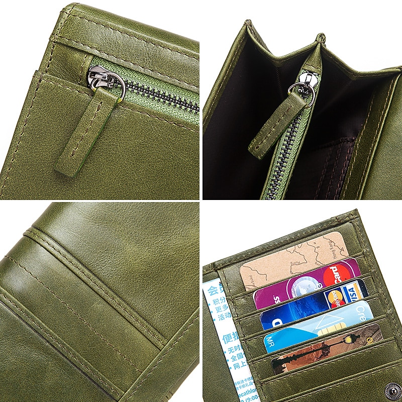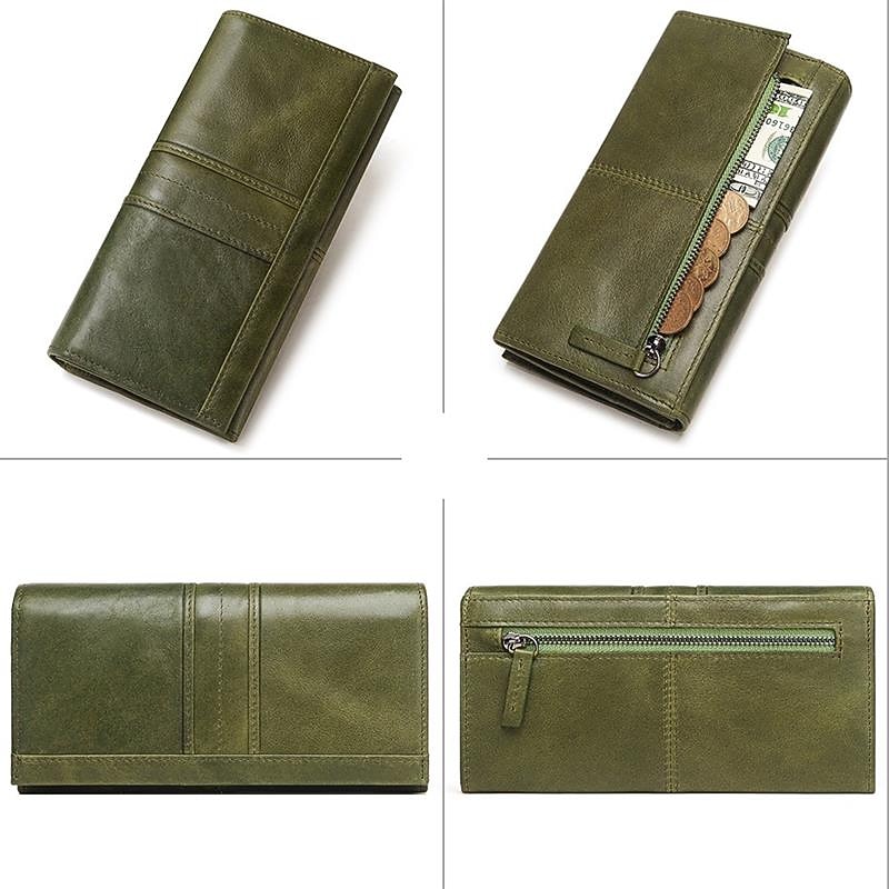 Women's Vintage Red Leather RFID-Blocking Wallet - Multi-Compartment Clutch with Card Slots, Coin Pocket, and ID Window for Everyday and Travel Use 11