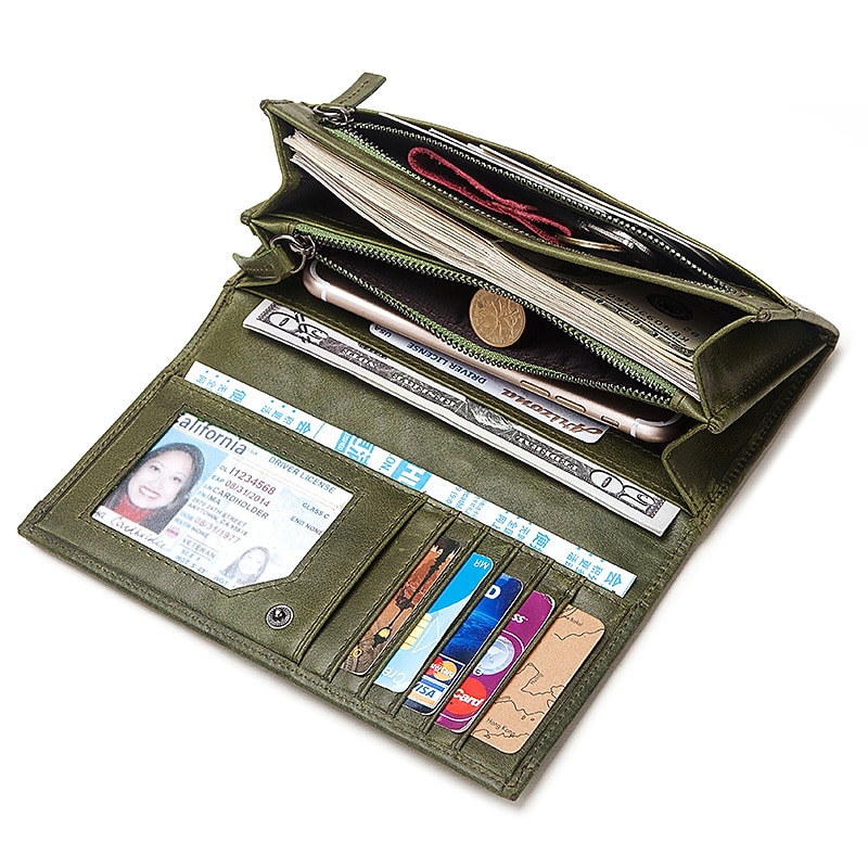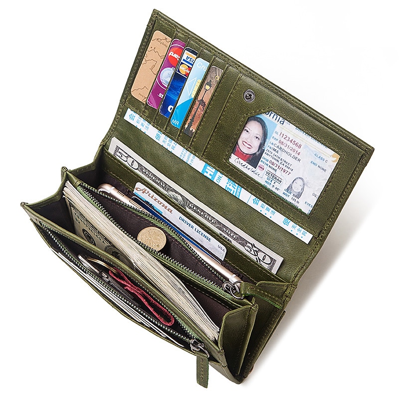 Women's Vintage Red Leather RFID-Blocking Wallet - Multi-Compartment Clutch with Card Slots, Coin Pocket, and ID Window for Everyday and Travel Use 15