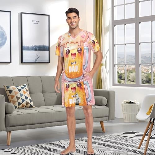 Mens Pajama Short Sleeve Summer Sleepwear Lounge V-Neck Pjs Sleepwear With Pockets, S-XXL 1