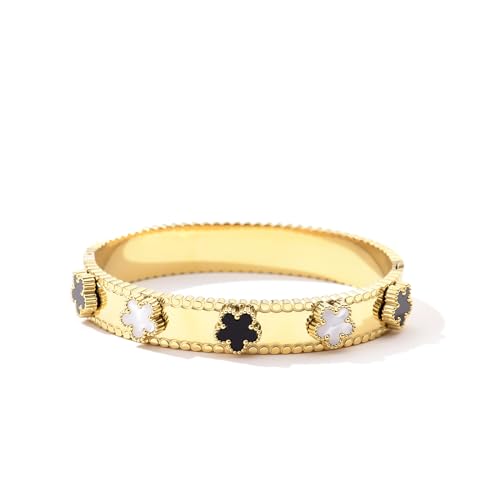 Clover Bracelet Bangle for Women 14K Gold and White Gold Plated Stainless Steel Lucky Jewelry 5