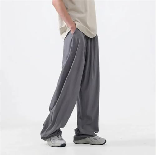 Men Thin Cooling Ice Silk Casual Pants Loose Wide Baggy Straight Trousers 4