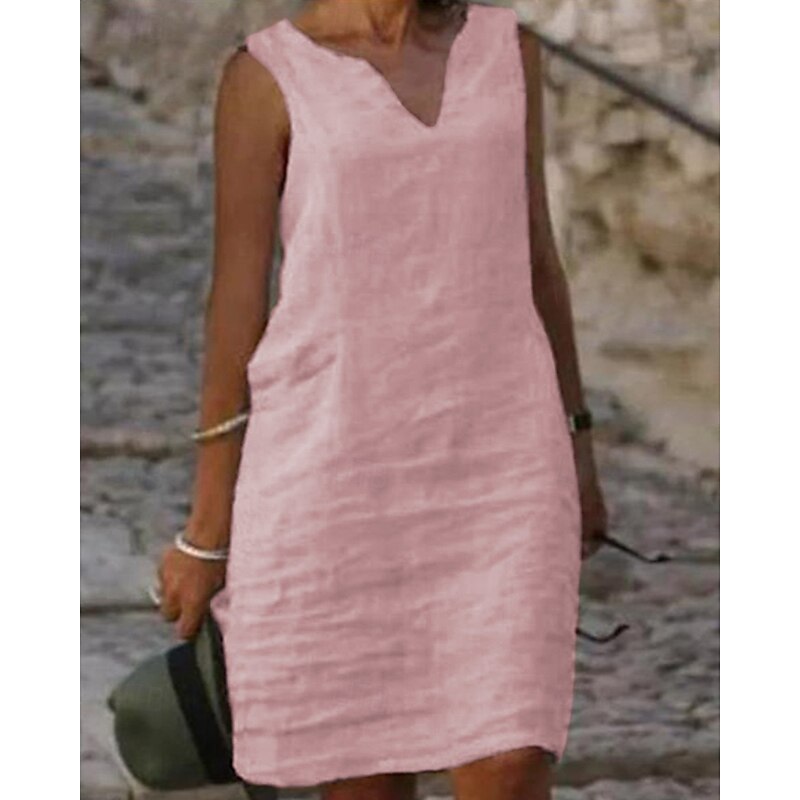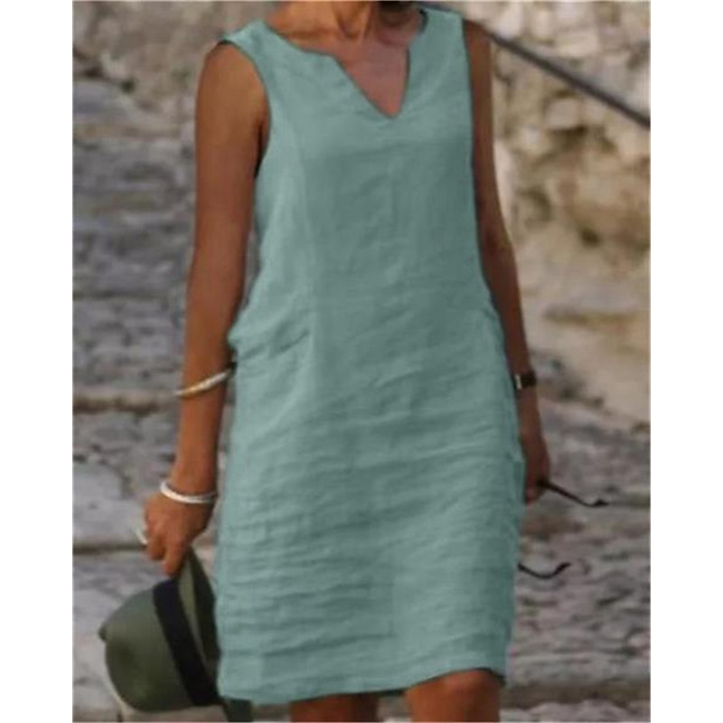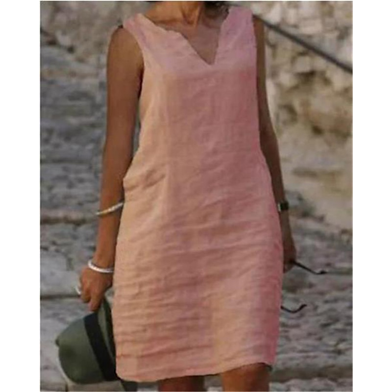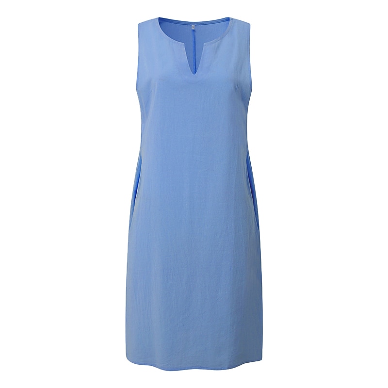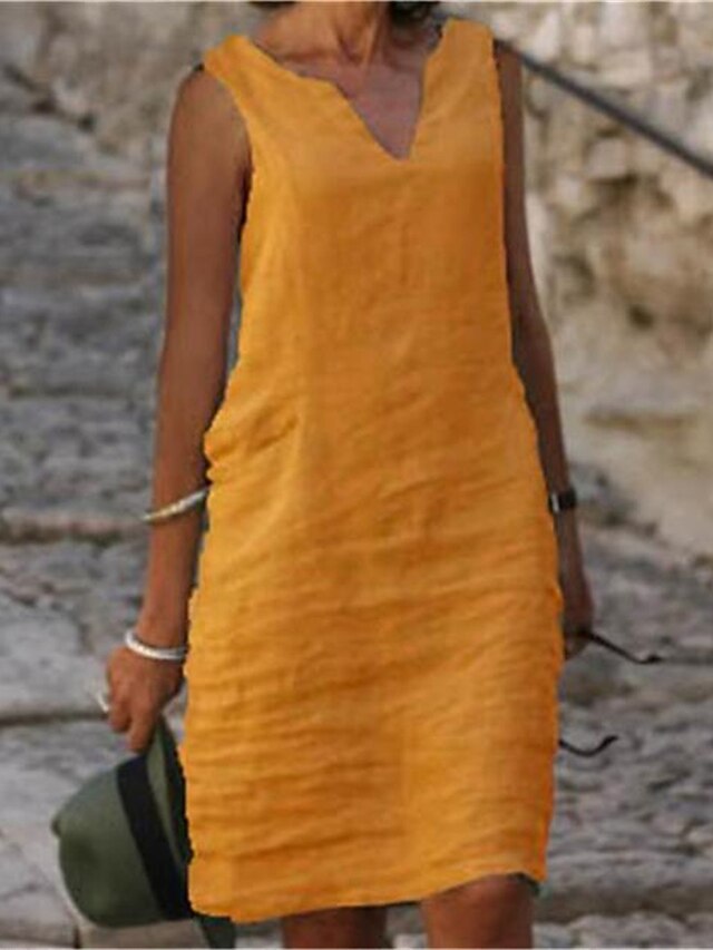 More information about Women's Midi Dress Cotton Linen Dresses Casual Dress Cotton Linen Dress Shift Dress Basic Casual Vacation Daily Going out Regular Fit Pure Color Sleeveless Split Neck Yellow Pink Blue Green Summer