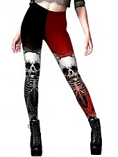 More information about Women's Leggings Vacation Vintage Fashion Full Length High WaistPantsHalloween Graphic Color Block Skull Printing Soft Breathable Stretchy Outdoor Vacation Street claret Spring Fall Winter Skinny