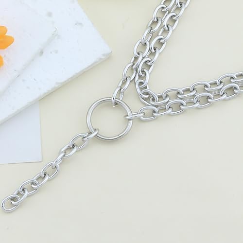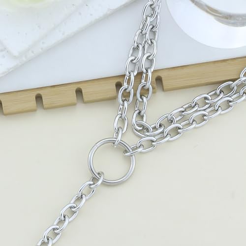 HOT ! Chunky Silver Necklaces for Women Silver Layered Pirate Necklaces Punk 8090s Hip Hop Cuban Link Chain Necklace Layered Choker Necklace Pirate Prom Jewelry Freaknik Outfit Accessories