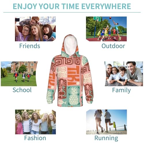 Exotic Tiki Pattern Kids Pullover Hoodies Boys Sweatshirts Girls Athletic Clothes with Pocket 7