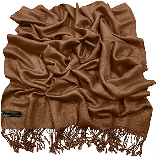CJ Apparel Brown Solid Color Tassels Design Nepalese Shawl Seconds Scarf Wrap Stole Throw Head Wrap Pashmina Hand Made in Nepal New 1