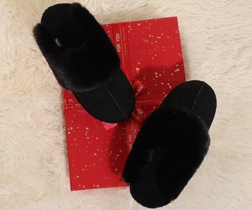 Fur description: Faux Suede and Faux FurSole material: RubberOuter material: Faux SuedeClosure type: Pull-OnWarm and Cozy:Artificial coral fleece lined is soft and skin-friendly, keeping you warm and plush during the cold fall and winter. The faux suede upper and fluff fur collar scuff slippers are as luxurious as they comeIndoor & Outdoor:These elegant furry slippers are easy to pair with casual outfits and pajamas or robes, and can be used not only as bedroom slippers but also for yard activities, where they can be worn to walk the dog, go shopping or sign for parcelsNon-slip and Lightweight:Women's platform slippers with arch support are a blessing for thick-soled lovers, non-slip texture of the sole provides reliable traction, the lightweight material makes every step of walking stress-freeEasy to Wear:These fashion cute slip-on slippers are designed for easy on and off. It is relaxing to wear and helps to eliminate fatigue for comfort after a long day hard workExcellent Choice:Available in several colors, perfect for women of all ages and lifestyles.It is the warmest presents for Christmas stocking stuffers and New Year, the best choice for your girlfriend, wife, mom and grandma Perfect for everyday use. excellent materials and excellent craftsmanship ensure long-lasting durability.