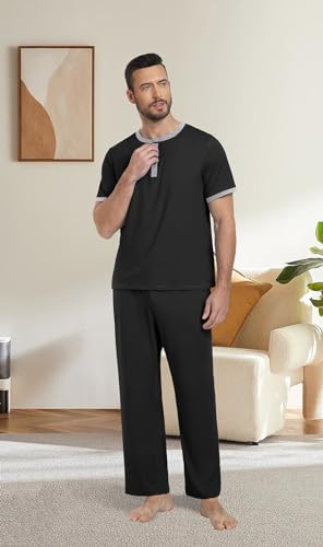 • 【Features】: The mens short sleeve and pants sleep sets are designed with button neck, contrast color, simple and classic. The elastic waistband shorts provide a comfortable fit. And the functional pockets can keep your essentials.