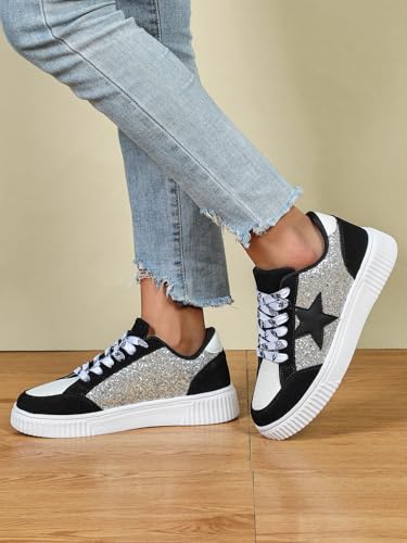 Sole material: Thermoplastic PolyurethaneOuter material: Polyurethane (PU)Closure type: Lace-UpWater resistance level: Water RepellentUnique Y2K Star Patch Design Features a bold glitter star splice with pentagram accents bringing a retro-futuristic vibe to your streetwear or casual looks.All-Day Comfort and Breathability Made with soft lining breathable insole and cushioned low-top design to keep your feet comfortable during walking working or skating.Back-to-School Ready Street Style Perfect for students and young professionals who want standout footwear that blends comfort with bold fashion-forward details.Durable PU Leather with Grippy Sole Constructed from wear-resistant PU leather and anti-slip rubber outsole offering excellent grip and control for urban movement.Versatile for Any Occasion Ideal for walking commuting dating or even casual events like weddings and parties fits effortlessly into everyday fashion rotation. Perfect for everyday use. superior materials and excellent craftsmanship ensure long-lasting durability.
